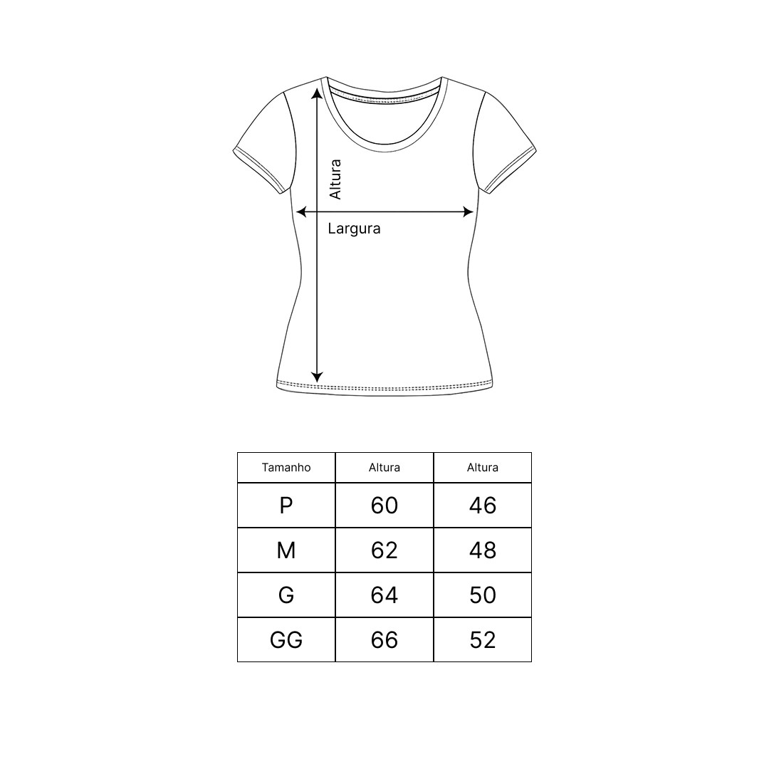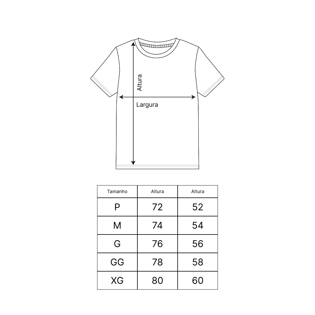 Para garantir o melhor caimento, utilize uma camiseta que você já usa e gosta do ajuste.